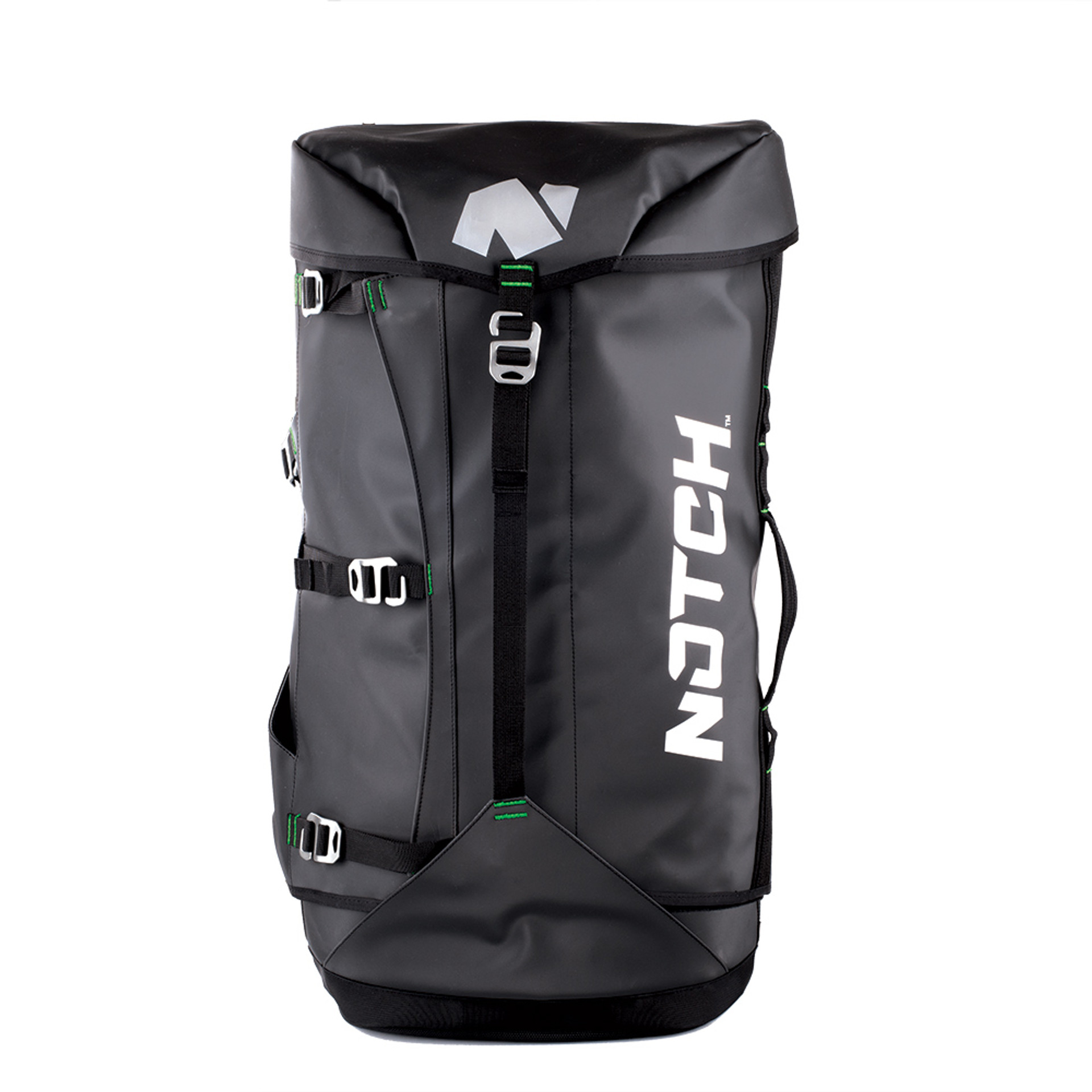 The Notch Equipment Pro Access Bag is constructed of heavy-duty 900 denier fabric with top and front bag access.