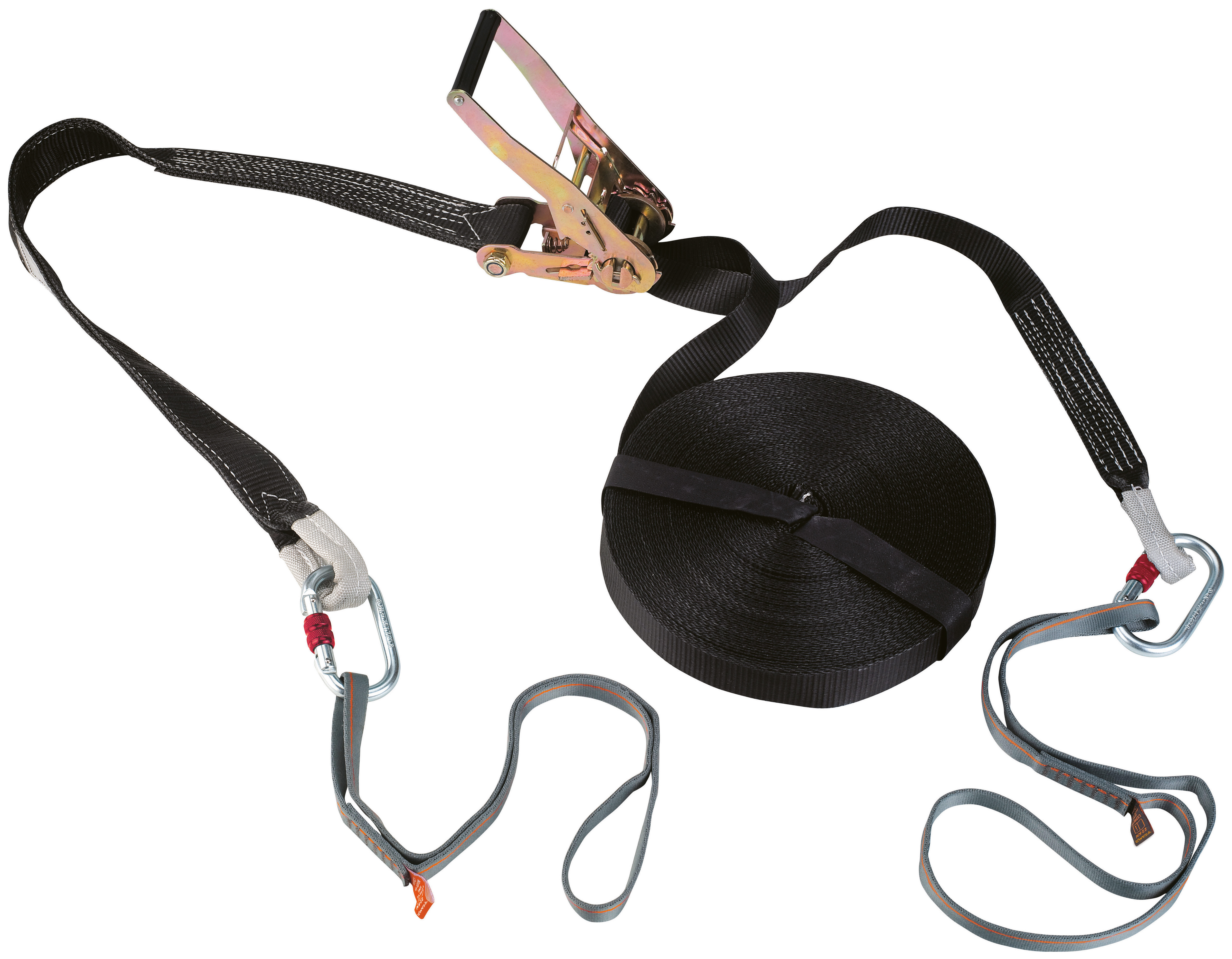 Horizontal temporary lifeline constructed from strong and durable polyester webbing.
